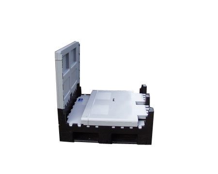 Can be stacked up to 5 high when filled. A folded container minimises the cost of return freight. Stacked 6 high folded.