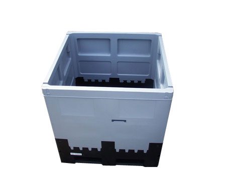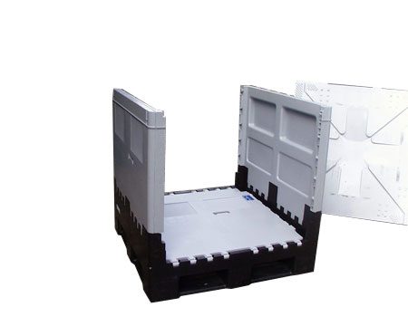 The concept is based on large foldable containers with flexible liner bags. These are used widely in Europe. Greatly reduces the use of packaging material, storage space, is returnable and reusable. The lid is locked to the sides with strong lockable handles, which can be sealed for security.
