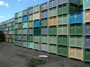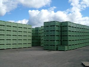 SchoellerAllibert formerly known as Schoeller Arca Systems Big Box are the leaders in produce and food industry containers. Their 100% Virgin HDPE plastic construction includes no recycled materials. This feature allows direct contact with edible foods, it also guarantees daily use in chillers and freezers without cracking or deteriation over many years of use. Big Box has many copiers but none can offer the superior performance that our unique design offers. Big Box can safely stack up to eight high FULL in warehouse or three high FULL during transportation. This is made possible by the 35mm interlocking depth of the top bin skid into the bin below, with or without the lid.